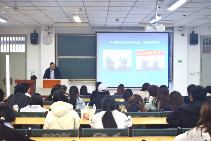 講座中,王迅緊密結(jié)合校園新聞宣傳報道實際,深入淺出地講解了會議、調(diào)研考察、校園活動等不同場景中的拍攝技巧,通過豐富的案例與實戰(zhàn)經(jīng)驗,為學(xué)生們提供了既具理論深度又具操作性的指導(dǎo)。他鼓勵學(xué)生培養(yǎng)新聞敏感性與審美能力,將所學(xué)知識靈活應(yīng)用于實踐中,捕捉校園生活的精彩瞬間。學(xué)生們聽得津津有味,不時爆發(fā)出陣陣掌聲,現(xiàn)場氣氛熱烈而活躍。