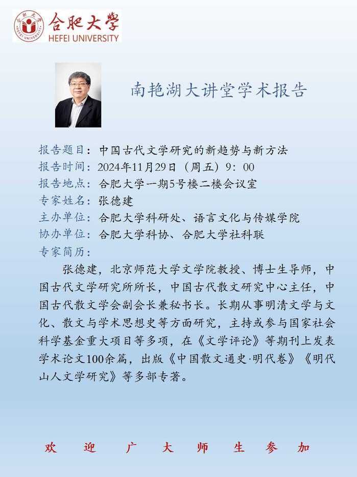 【南艷湖大講堂】中國古代文學研究的新趨勢與新方法