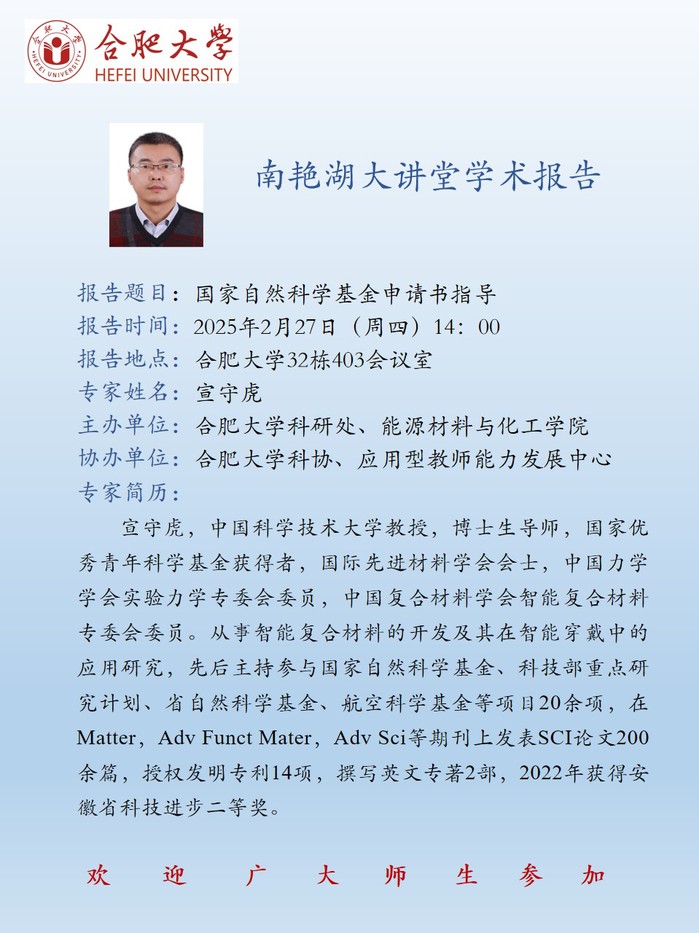 【南艷湖大講堂】國家自然科學(xué)基金申請書指導(dǎo)