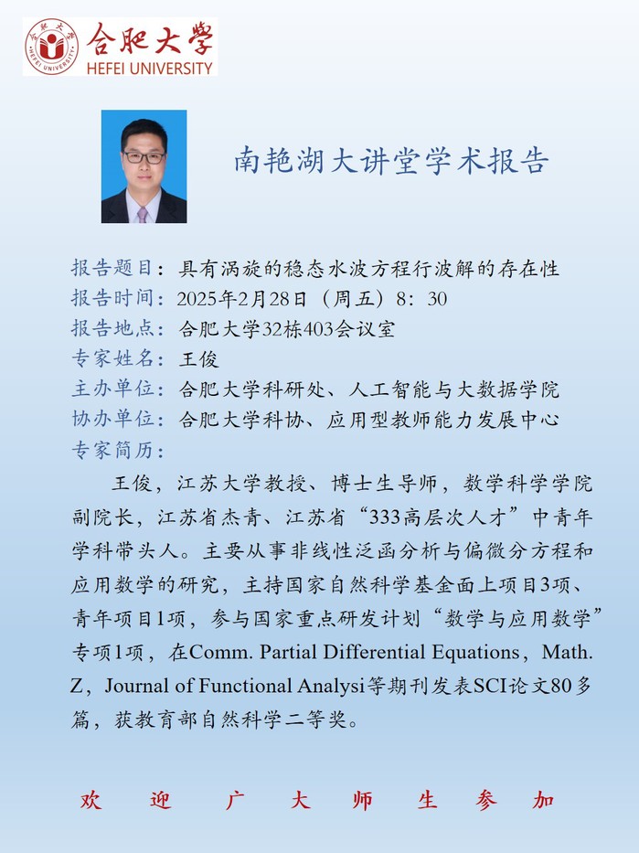 【南艷湖大講堂】具有渦旋的穩態水波方程行波解的存在性