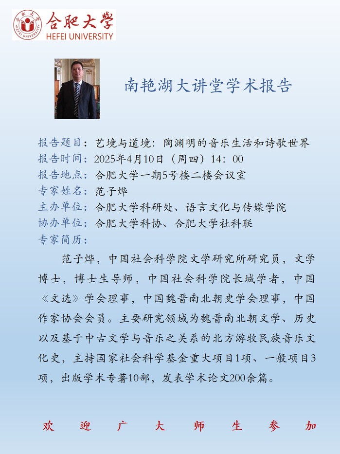 【南艷湖大講堂】藝境與道境:陶淵明的音樂生活和詩歌世界