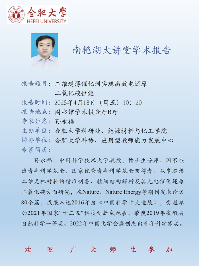 【南艷湖大講堂】二維超薄催化劑實現高效電還原二氧化碳性能
