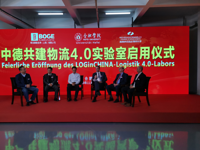 11月15日,中德共建物流4.0實驗室落成暨啟用儀式在我校產學研大樓順利舉行。合肥學院黨委書記、校長王其東出席儀式,德國奧斯納布呂克應用科學大學教授、中德合作物流管理專業項目負責人米歇爾?舒勒,安徽大學黨委書記蔡敬民,海口經濟學院校長陳嘯,中國科學技術大學管理學院丁斌教授,博戈公司總經理福萊穆勒,德國人工智能研究所高級研究員亨利?歌思林博士等70余名專家及企業代表參加。本次儀式由合肥學院經濟與管理學院院長陳江華主持。
