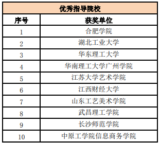 我校設計學院學生宛楓在趙靜老師指導下獲得最具商業價值獎1項,銅獎1項,吳翔在高京老師指導下獲得銅獎1項,譚淼在趙靜老師指導下獲得優秀獎1項,覃柳生在高京老師指導下獲得優秀獎1項,獲得鼓勵獎3項。合肥學院獲優秀指導院校獎和優秀組織院校獎。