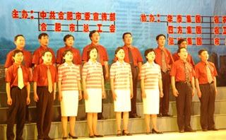 在合肥市委宣傳部、合肥市總工會主辦的“合肥市第三屆職工文化藝術節暨首屆企業文化節開幕式――合肥市慶‘五一’慰問勞模專場文藝晚會”上,由我院院長趙良慶教授、岳梅博士等17人組成的合肥學院教授、博士合唱隊,特別引人注目,“教授、博士真可愛”、“知識就是力量”等醒目標語,充分展示了合肥學院教授、博士們的風采。