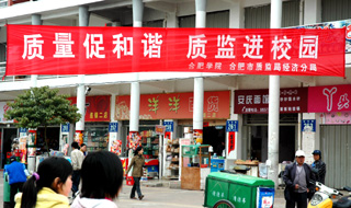 3月15日上午9點,以“質量促和諧,質監進校園”為主題的“3.15”維權活動在我院南艷湖校區學生公寓區展開。活動由合肥市技術監督局經濟技術開發區分局、我院電子信息與電氣工程系及海恒社區主辦。合肥市技術監督局經濟技術開發區分局局長婁毅、副局長劉志清,我院副院長陳嘯、電子信息與電氣工程系黨總支副書記李用普、團委副書記宣文及經濟技術開發區海恒社區主任張榮耀到場并指導工作。