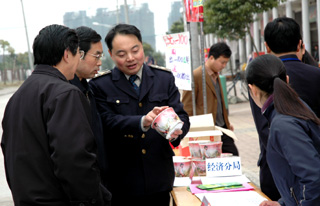 此次活動分為商品鑒偽、法律法規咨詢、社區管理咨詢、安全知識宣傳等幾個部分。電子信息與電氣工程系05電本(1)班40名學生、管理系5名社區掛職副書記及經濟技術開發區海恒社區青年志愿者現場向我院師生宣傳《定量包裝計量監督管理辦法》、《中華人民共和國產品質量法》、《絮用纖維制品禁止使用原料管理辦法(試行)》等相關法律法規。中國移動公司、聯通公司等10余家企業也趕到現場參與宣傳有關消費權益保護知識。