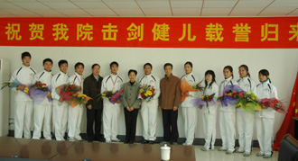 基礎(chǔ)教學(xué)部副主任許大慶首先就合肥學(xué)院擊劍隊組隊、訓(xùn)練以及此次赴珠海參加第十一屆全國大學(xué)生擊劍錦標(biāo)賽的情況作了介紹。接著,學(xué)生代表向運(yùn)動員、教練員敬獻(xiàn)鮮花,張雪平副市長等領(lǐng)導(dǎo)還與擊劍健兒們進(jìn)行合影留念。隨后,運(yùn)動員、教練員代表分別發(fā)言;院長趙良慶發(fā)表了重要講話,他充分肯定了這是我院學(xué)生素質(zhì)教育的一項重要成果。市體育局局長汪杰在講話中說,合肥學(xué)院擊劍隊白手起家,在這么短時間內(nèi),能在全國大學(xué)生擊劍錦標(biāo)賽這樣的重大賽事中取得如此優(yōu)異的成績是很罕見的,作為一位體育工作者打心眼里感到高興。