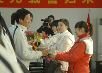 學(xué)生代表向運(yùn)動員、教練員敬獻(xiàn)鮮花