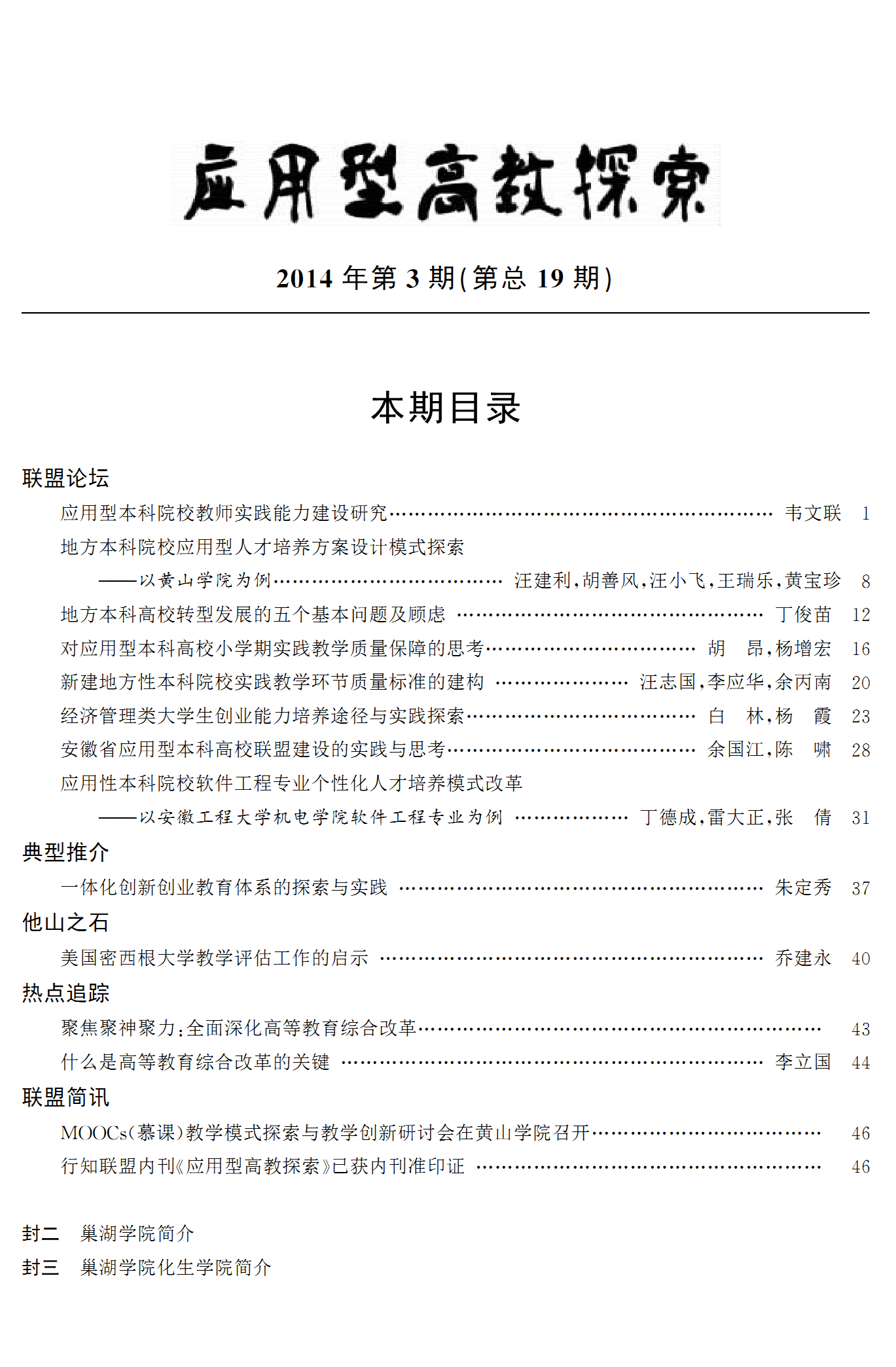 《應用型高教探索》2014年第 3 期(總第19期)已編發,具體內容請查閱發展規劃處網站http://www.8tb8.xyz/s/85/t/330/p/6/c/7087/list.htm。