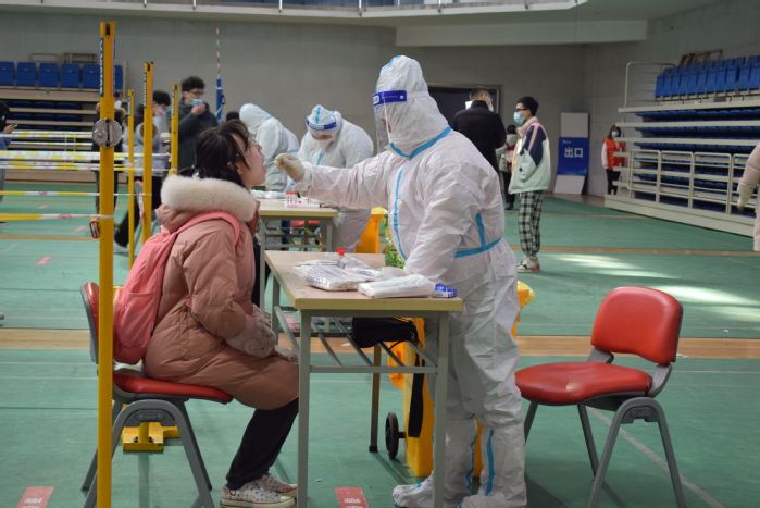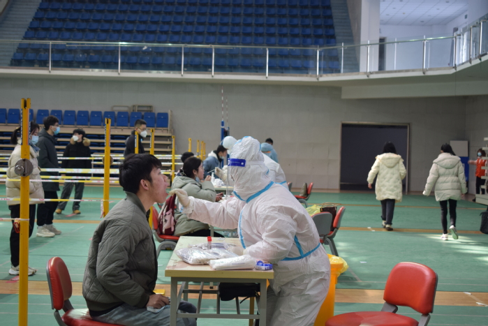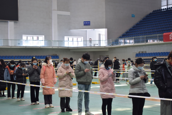 為保證平穩順利開學,此前學校召開2022年春季學期第一次學生工作例會,綜合考慮當前疫情形勢、防控政策要求和本地本校實際,制定了春季學生返校方案,開展返校疫情防控實戰演練,確保疫情防控領導體制、應急機制、指揮體系高效運行,強化疫情防控部署、指導和督促檢查,多方面完善服務保障工作,為學生平安返校保駕護航。2月16日起,我為返校師生全面提供了免費核酸檢測。“請同學們戴好口罩,保持一米距離,出示安康碼,先登記后檢測……”二期體育館內,登記員對學生遞交的安康碼進行掃碼核驗,醫務人員依次采集咽拭子。學子們核酸檢測區依次排隊、掃碼、登記、檢測,秩序井然。在教師、學生和醫護人員的全力配合下,全校順利完成核酸檢測任務,嚴格做到了“應檢盡檢,不漏一人”。