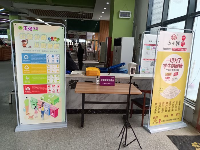 圖書館、教室、食堂體育館為學生返校做了周密準備,全面清潔消殺,維護基礎設施19日中午學生食堂準時開伙,煥然一新的菜單欄、精心準備的飯菜、“有序排隊,間隔一米”的地面標識、“一粒米,禾滴汗,粒粒糧食汗珠換”“文明用餐,節儉惜福”的宣傳海報……讓大家耳目一新。在香怡、桂苑、蘭苑宿舍樓里,宿管阿姨們熱情迎接返校學生進入宿舍,一聲聲悉心問候、一個個嶄新標識,處處歡迎著合院學子們“回家”。