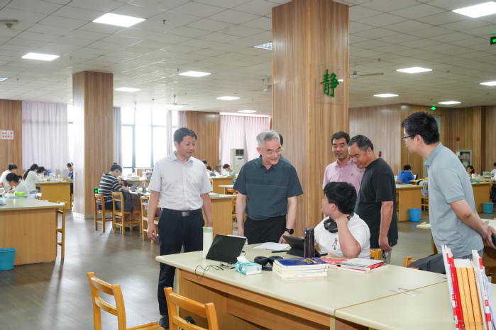 鄔平川一行首先來到圖書館自習區域和教學樓,與學生們親切交談,詳細詢問學習情況和對環境保障的需求,關注考研學生的備考進展與實際困難,為學生鼓勁加油。