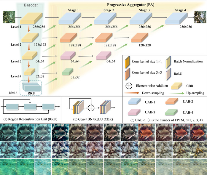 在水下圖像增強方向,研究團隊提出一種融合特征提示Transformer的漸進式聚合增強方法。該方法創(chuàng)新性地融合了特征注意力機制與提示權(quán)重調(diào)節(jié)輸入特征,實現(xiàn)了特征高效傳遞與多尺度漸進式聚合,可以全面捕捉圖像細節(jié)與語義信息以有效增強水下降質(zhì)圖像。該方法展現(xiàn)出優(yōu)異的學(xué)習(xí)與泛化能力,且能為下游視覺任務(wù)帶來顯著性能增益。楊靜博士為第一作者和通訊作者,合肥大學(xué)人工智能與大數(shù)據(jù)學(xué)院為第一完成單位。(論文標(biāo)題:PAFPT: Progressive aggregator with feature prompted transformer for underwater image enhancement,引用鏈接:https://www.sciencedirect.com/science/article/pii/S0957417424024060)