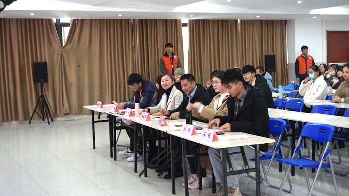 學生助理陸元婷對志愿者們進行校情專題培訓。汪朋向大家介紹了志愿者相關紀律要求和獎懲制度。