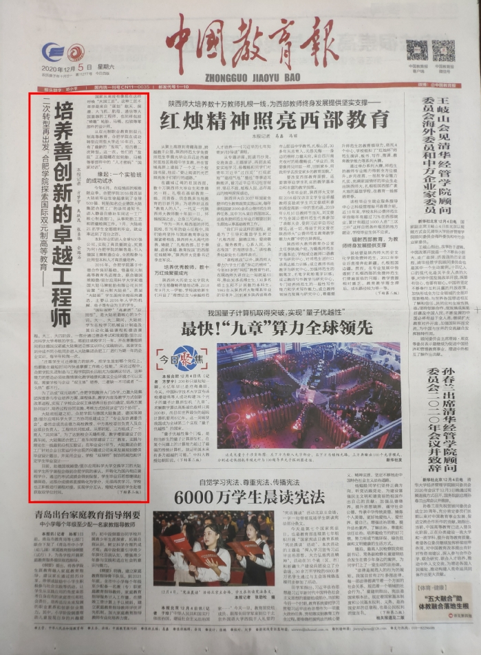Einleitung: Am 5. Dezember berichtete die Titelseite der ?China Education News“ über die internationale duale Hochschulbildung unserer Universit?t.