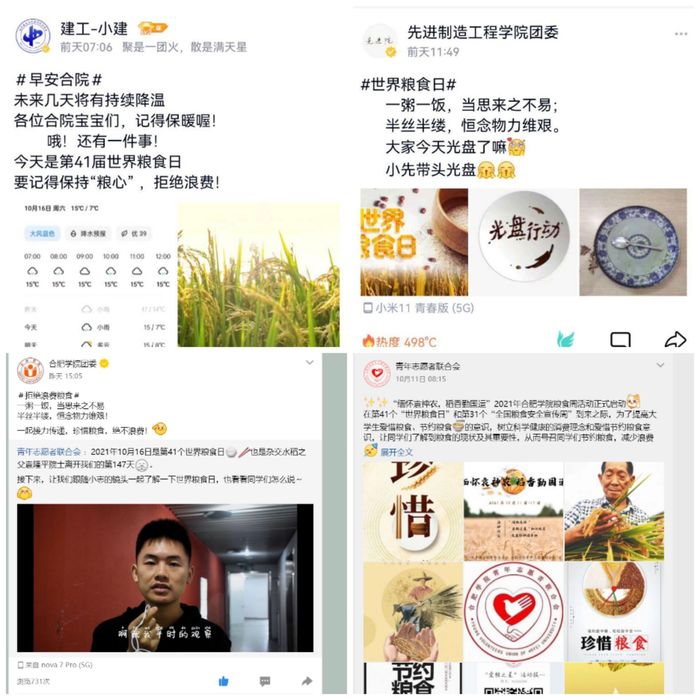 今年的10月16日是第四十一個世界“糧食日”,根據安徽省《關于做好2021年世界糧食日和全國糧食安全宣傳周活動的通知》,10月11日至17日,我校青年志愿者聯合會以“緬懷袁神農,稻香勤國運”為主題,開展了形式多樣的糧食安全宣傳教育活動。