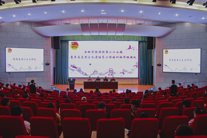 11月12日,合肥學院團校第二十七期青年馬克思主義者培養工程開班儀式在圖書館報告廳舉辦。校團委書記王玉、馬克思主義學院副院長馬保衛、校團委副書記李妍妍等參加儀式,儀式由校團委學生會辦公室主任丁婧主持。