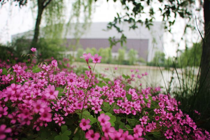 行走于我校二區(qū)校園梧桐大道,兩旁茵茵如繞,新桐綠芽初吐,脆生生的,閃耀著春的希望,仿佛一伸手觸及,也會(huì)被綠染上指尖。行政樓前小山,遙看草色連綿,走近只見斑斑點(diǎn)點(diǎn),好一個(gè)“草色遙看近卻無(wú)”,借得東風(fēng),恍若聽得見草兒細(xì)語(yǔ)。圖書館的落地窗在陽(yáng)光中倒映著滿滿綠意,仿佛連書頁(yè)也是溫柔的春熙。約上三五好友,手捧書籍,端坐圖書館前湖畔,書香滿滿,春雨微微。待到天晴,賞荷數(shù)葦,好不愜意。