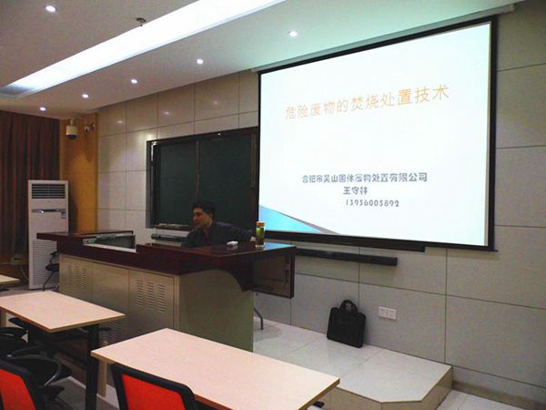 2015年4月29日上午10時,合肥市吳山固廢處置有限公司的王守林工程師圍繞危險廢物的焚燒處置技術做了一場精彩報告。王守林工程師先簡單介紹了危險廢棄物的定義和一些常規處置手段,接著著重剖析了焚燒的技術要點,包含焚燒爐的類型、技術指標和焚燒系統工藝三大模塊,最后就焚燒產生的劇毒物質二噁英的控制方式向我們進行了詳細的介紹。我校環境工程專業研究生以固廢為主要的研究方向,王守林工程師的講座對于學生們豐富課外知識和了解固廢的處置工藝有很大的幫助。下周同學們還將去吳山固廢處置公司現場實地學習。實地考察學習環節是我校專業碩士培養的一大亮點。