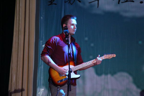 其中,最聲勢浩大令人振奮的表演要數樂器合唱《貝加爾湖畔》了。鋼琴、口琴、小提琴、吉他、手風琴五種樂器加之男聲合唱,毫無瑕疵的融合配上動聽的旋律以及故事性極強的歌詞,將觀眾帶進了一個音樂的殿堂,也讓他們感受到漢文化之外西洋藝術的迷人之美。隨后,現場進行四國服裝走秀,中國的齊腰、齊胸襦裙、深衣直裾曲裾,韓國的韓服,日本的和服,德國的晚禮服在解說中一一亮相。四國服飾齊聚一臺,不一樣的文化滲透著不同的特點。