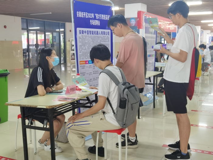 本次招聘會嚴格落實各項疫情防控措施,主要面向我校2022屆在校未就業畢業生。本次活動共計50家企業參會,提供招聘崗位217個,招聘人數需求達1224人。參會企業包括安徽豐樂、安徽晶科、北大未名、合肥星源等,招聘專業需求主要涉及人工智能、生物化工、建筑工程、機械自動化、設計、語言文學、新聞傳播、外語、旅游、教育和經濟管理等。我校近百位在校未就業畢業生參加了此次招聘活動,參會企業共收取簡歷81份,招聘會現場初步達成意向為11人。
