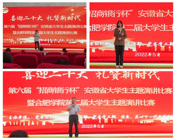 5月26日,合肥學院“喜迎二十大 禮贊新時代”第二屆大學生主題演講比賽在圖書館報告廳舉行。比賽由黨委組織部、黨委宣傳部、黨委學工部、團委、關心下一代工作委員會聯合舉辦。安徽省演講學會會長崔躍松、招商銀行云谷路支行行長胡婧、教育學院教授魯世秀、團委副書記李妍妍、黨委學工部思政教育中心主任黃銳擔任評委。