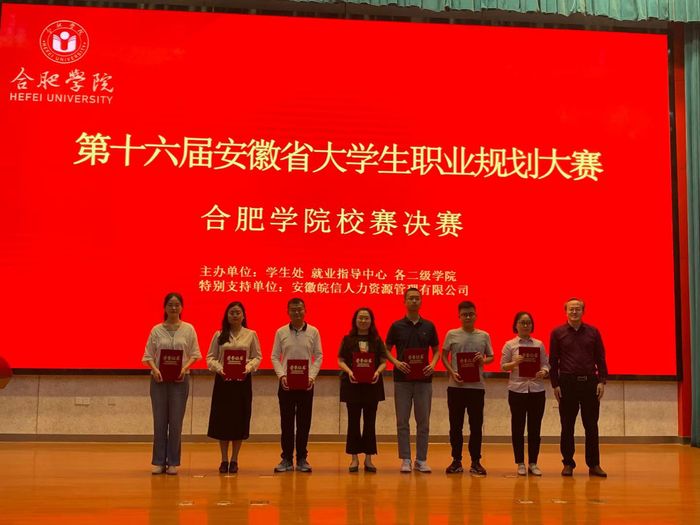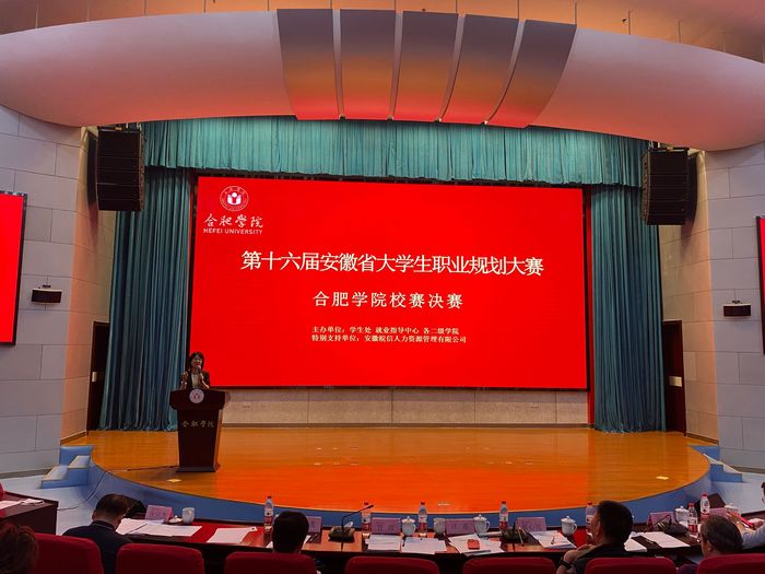 5月26日下午,第十六屆安徽省大學生職業(yè)規(guī)劃大賽合肥學院校賽決賽在圖書館報告廳A廳順利舉辦。中國科學技術(shù)大學就業(yè)指導中心主任郝心遠、皖信人力資源管理有限公司副董事長汪泓、佳通輪胎(中國)投資有限公司人力資源部總經(jīng)理助理宋敬、正德集團董事長管政、中智安徽總經(jīng)理張凱、中國(合肥)人力資源產(chǎn)業(yè)園運營公司總經(jīng)理周虎、皖信人力資源管理有限公司北部區(qū)域總經(jīng)理柳超霞出席并擔任評委。各二級學院指導老師及學生代表觀看了比賽。