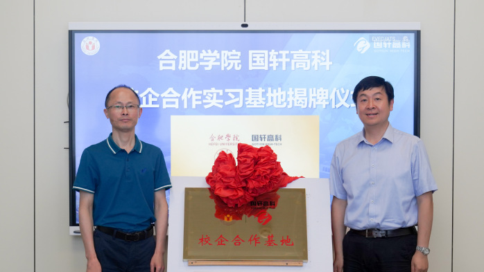 6月16日上午,合肥學(xué)院與國軒高科校企合作實(shí)習(xí)基地簽約暨揭牌儀式在國軒高科包河總部舉行。國軒高科副總裁王永海、人力資源中心總監(jiān)周祖寧、國軒學(xué)堂執(zhí)行校長陳雨、國軒學(xué)堂執(zhí)行副校長吳林、人力資源中心招聘經(jīng)理張守洪、國軒學(xué)堂培訓(xùn)經(jīng)理張東,我校黨委委員、學(xué)工部部長朱濤,科研處處長、服務(wù)地方辦公室主任汪潘義,教務(wù)處副處長王仁寶,國際交流合作處副處長方宗保,外國語學(xué)院黨委書記余勇、院長侯繼紅、德語系主任江紅、德語系教師朱俊俏、蔡欣怡以及德語系2018級4位實(shí)習(xí)生等參加儀式。