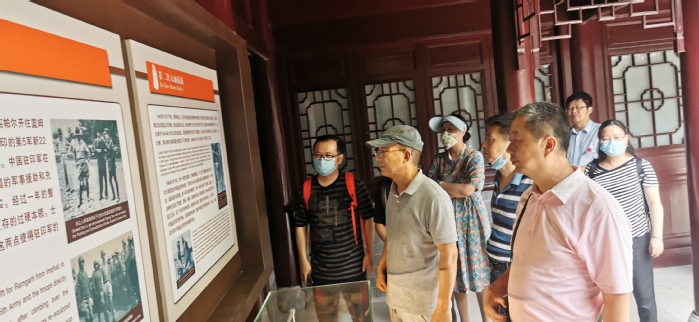 會員們首先參觀了位于廬江縣的新四軍江北指揮部舊址。新四軍江北指揮部是1939年5月根據黨中央指示,張云逸、葉挺、鄧子恢、羅炳輝等在安徽省廬江縣東湯池組建的。新四軍江北指揮部成立后,整編了江北各部隊,積極東進抗日,開展了艱苦卓絕的反“圍剿”和反“摩擦”斗爭,創建和發展了抗日根據地,為開創華中地區革命的新局面做出了重要貢獻。