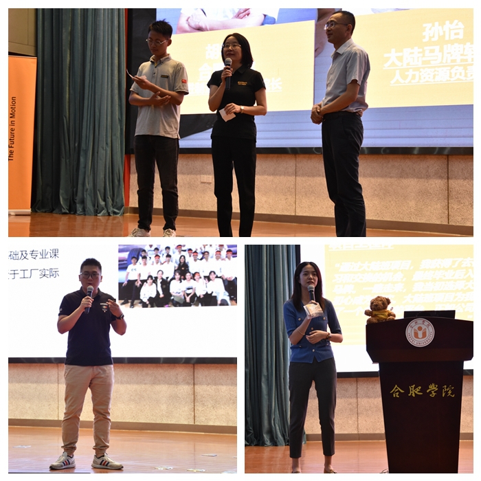 首先,大陸馬牌輪胎(中國)有限公司招聘與雇主品牌經理李媛媛介紹了大陸集團及大陸馬牌輪胎公司的組織架構、前沿技術、品牌定位,詳細講述了大陸馬牌輪胎合肥工廠的概況、發展歷程和市場規模。大陸班負責人張光洲從班級的基本概況、班級辦學特色、大陸班的發展機遇與挑戰、課程設置、學費標準等方面為現場同學詳細介紹了項目情況。在答疑互動環節,先進制造工程學院院長胡學友、大陸馬牌輪胎(合肥)有限公司人力資源總監孫怡講解了大陸班選拔流程,優秀畢業生代表暢談在大陸班的成長故事,鼓勵新生積極參與項目報名。