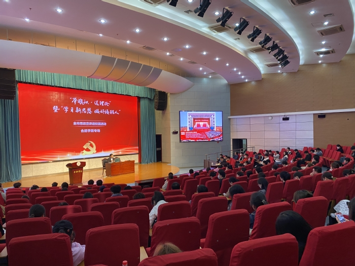 3月9日,學校組織開展“舉旗幟·送理論”暨“學習新思想 做好接班人”全市思政宣講進校園(合肥學院專場)活動,市社科聯副主席、市委講師團副團長、省委講師團基層宣講專家賈猛來校宣講,我校各二級學院師生代表160人參加報告會,會議由黨委委員、宣傳統戰部部長賈峰主持。