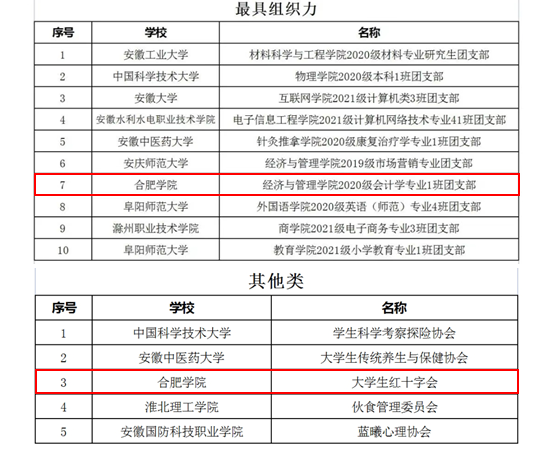 近日,在共青團安徽省委員會、安徽省學生聯合會主辦的2022年安徽省高校聯通杯“活力團支部”“活力社團”風采展示活動中,我校經濟與管理學院2020級會計學專業1班團支部榮獲“活力團支部”稱號,大學生紅十字會榮獲“活力社團”稱號。