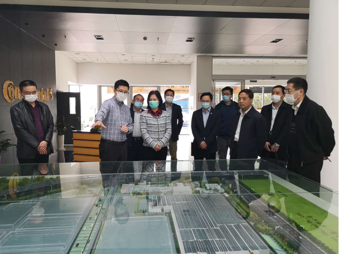 大陸集團合肥工廠副總經理周淵向吳春梅一行介紹工廠發展成果及規劃