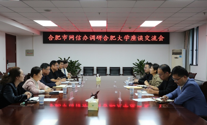 10月14日,合肥市委網信辦副主任王叢一行來校,就校地網絡工作協同開展座談交流。校黨委副書記周飛出席并主持座談會。