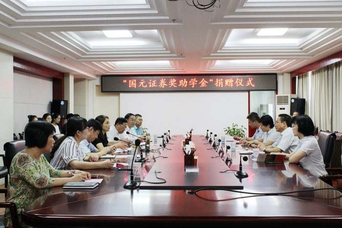 陳秀對國元證券長期以來支持合肥學院教育事業發展以及關愛學生成長的善舉表示衷心感謝,對國元證券在安徽省內多個高校設立獎助學金,積極履行社會責任,關心安徽教育事業發展的公益行為高度贊揚,并向獲得“國元證券獎助學金”的同學表示熱烈祝賀。她希望“國元證券獎助學金”的慈善事業在合肥學院一直持續不斷地進行下去,讓更多的學子感受企業的社會責任,讓更多的學子今后走上社會也能傳承愛心,傳遞善意。