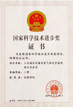 2020年1月10日,2019年度國家科學技術獎在京揭曉,共評選出296個項目。由中國科學院合肥物質科學研究院、中國科學技術大學、合肥學院等單位合作完成的“工業園區有毒有害氣體光學監測技術及應用”項目,榮獲國家科學技術進步獎二等獎,這也是我校環境團隊再次獲得國家科學技術進步獎。