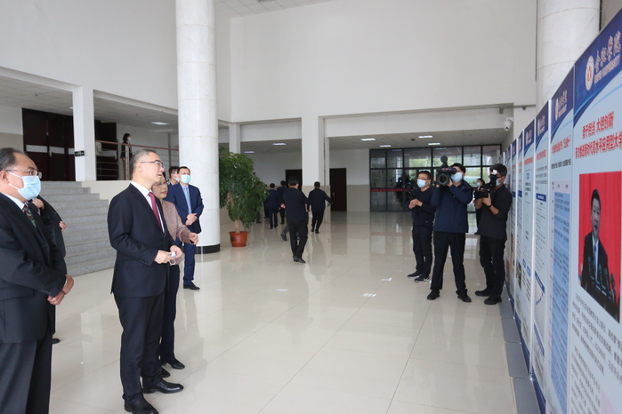 安徽省政府副秘書長、省政府政研室主任葉曉明,中共安徽省委教育工委副書記、省教育廳廳長趙振華,合肥市委常委、副市長路軍,省外事辦公室副主任王年寶,省政府辦公廳副主任金宗順,中共安徽省委教育工委委員、省教育廳副廳長張庚家,安徽大學(xué)黨委書記蔡敬民等陪同參觀。(黨委宣傳部
