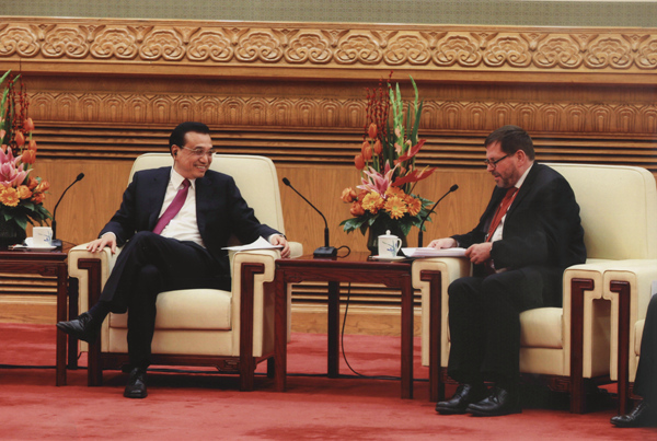 國(guó)務(wù)院總理李克強(qiáng)2月5日下午在人民大會(huì)堂親切會(huì)見在華工作的部分外國(guó)專家并同他們座談。我校客座教授、德國(guó)施特拉爾松德應(yīng)用科學(xué)大學(xué)校長(zhǎng)法爾克·霍恩、我校韓籍教授趙誠(chéng)惠、樸南奎夫婦,作為在皖外國(guó)專家代表出席了座談,其中霍恩教授作為僅有的四位發(fā)言代表之一,重點(diǎn)就“中國(guó)制造2025”與“應(yīng)用型高等教育改革”作了發(fā)言,并就我校“中德教育合作示范基地”籌建情況作了簡(jiǎn)要匯報(bào)。