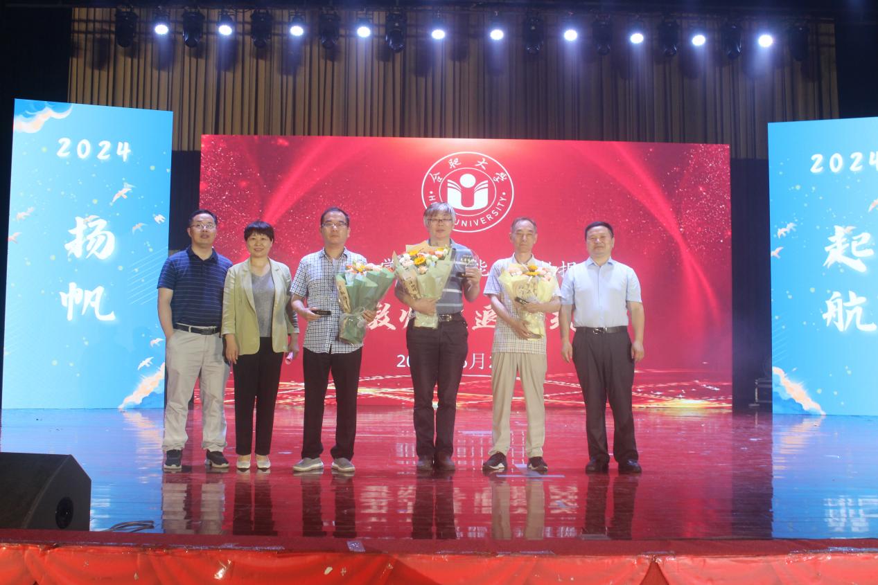 緊接著,“經年”篇章帶領大家回顧了那些與學校、老師和同學們共同度過的美好時光。歌曲《手寫的從前》、朗誦《彼方尚有榮光》等節目緩緩拉開了教師榮退儀式,書記牛欣、院長余海峰、副院長陳圣兵為退休教師張家銳、劉壽春、陳效軍頒發紀念章,牛欣書記為我們重新“備份”了三位退休教師的“數據集”,娓娓道來每一位老師孜孜不倦、默默奉獻的治學精神,她表示老教師們不僅傳授了知識,更傳遞了責任、激情和愛心,在教育教學、科研創新、社會服務等方面所做出的貢獻,已經深深地烙印在學院的成長史上,也將永遠銘記在學生們的心中。隨后張家銳老師用一首詩詞《感遇》送別畢業生,字里行間無不彰顯了教育工作者們的無私奉獻以及對學子們的深深期許,將晚會推向了又一波高潮。