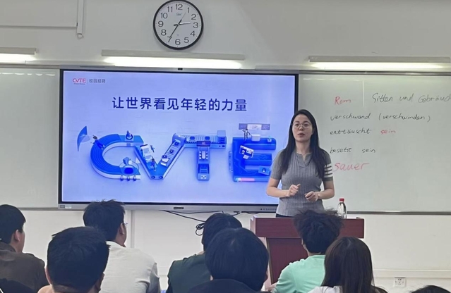 宣講會伊始,希沃公司HR通過一段企業宣傳片,帶領同學們沉浸式走進企業發展歷程。作為視源股份(CVTE)旗下深耕教育信息化15年的國家級高新技術企業,希沃以“讓教育更高效、更公平”為使命,自主研發的智能交互平板連續8年國內市場占有率超45%,服務覆蓋全國40萬所學校。依托母公司視源股份全球領先的智能顯示控制技術(其液晶顯示主控板卡市場份額連續15年全球第一),希沃構建起“6D教育數字化生態體系”——聚焦教學空間、教學過程、教育資源、教育治理、教師發展、學生學習六大場景的數字化重構。HR以‘AI教研助手’為例,展示了如何通過技術手段減輕教師的機械性工作負擔,能夠專注于創造性教學。