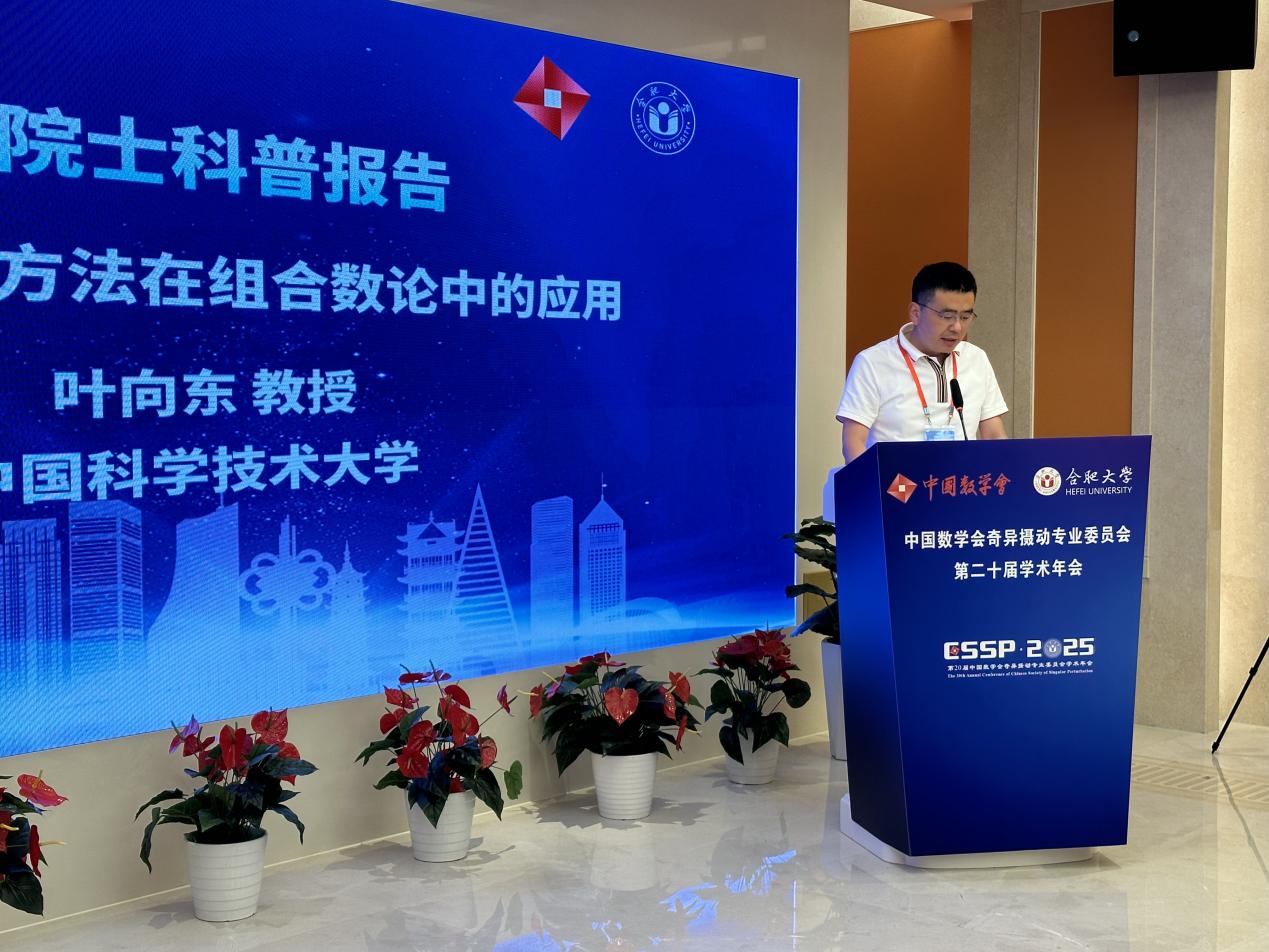 6月21日下午,受合肥大學邀請中國科學院院士葉向東教授作《動力系統方法在組合數論中的應用》的線上學術科普報告。本報告設立了兩個分會場,分別是:正在合肥大學舉行的“中國數學會奇異攝動專業委員會第二十屆學術年會”和國家自然科學基金“天元數學講習班”。有來自上海交通大學、華東師范大學、中國科學技術大學、中山大學等近40所高校的260余名學者和研究生參加。報告會由合肥大學黨委副書記、校長任永教授主持。