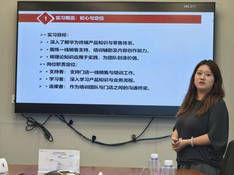 隨后合肥大學(xué)人工智能與大數(shù)據(jù)學(xué)院25屆校招生,現(xiàn)擔(dān)任華為安徽終端服務(wù)體驗顧問的梁雪,結(jié)合自身從校園到職場的過渡經(jīng)歷,進(jìn)行了精彩的交流分享。梁雪回顧了在校期間專業(yè)學(xué)習(xí)對職場工作的支撐作用,分享了入職華為后的工作內(nèi)容、成長歷程以及應(yīng)對工作挑戰(zhàn)的方法。合肥大學(xué)26屆暑期實習(xí)生代表孟澤西、龔小清、張諾分別結(jié)合自身實習(xí)經(jīng)歷進(jìn)行交流。孟澤西分享了在合肥市萬象城華為智能生活館的實習(xí)生活,講述了如何向客戶介紹產(chǎn)品特性、解決客戶疑問,以及在一線服務(wù)中提升的溝通能力和應(yīng)變能力;龔小清聚焦華為安徽終端合肥區(qū)域培訓(xùn)崗位的實習(xí)經(jīng)歷,介紹了參與培訓(xùn)方案制定、協(xié)助組織培訓(xùn)活動的過程,分享了對培訓(xùn)工作的理解和收獲;張諾則講述了在銅陵市萬達(dá)廣場華為智能生活館的實習(xí)故事,提及了如何結(jié)合專業(yè)知識為門店運營提供微小建議,以及在團(tuán)隊協(xié)作中感受到的企業(yè)氛圍。三位實習(xí)生的分享充滿細(xì)節(jié)與真情實感,不僅展現(xiàn)了自身的實習(xí)成果,也讓校企雙方看到了學(xué)生在實踐中的成長與潛力。