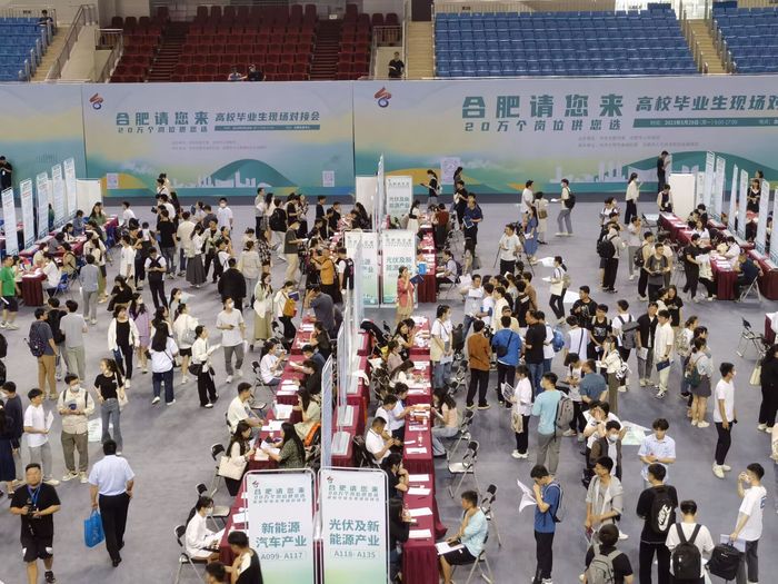為穩定和擴大就業崗位,讓高校畢業生“好就業、就好業”,合肥市持續舉辦“合肥請您來,20萬個崗位供您選”活動。5月29日,首場高校畢業生現場對接會在合肥體育中心舉辦。我校就業指導中心組織70余名2023屆畢業生參加活動。