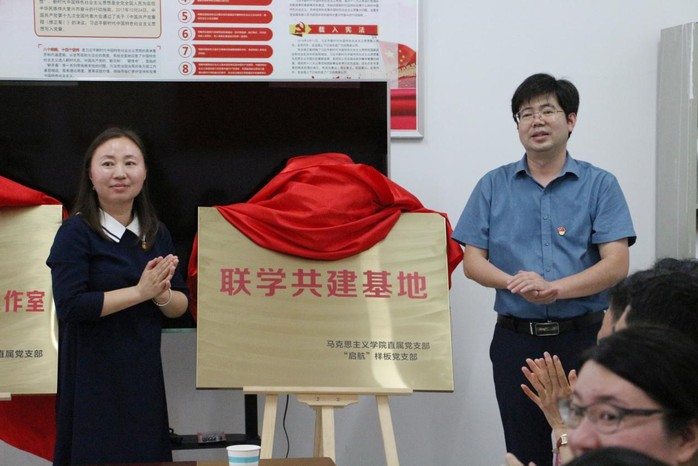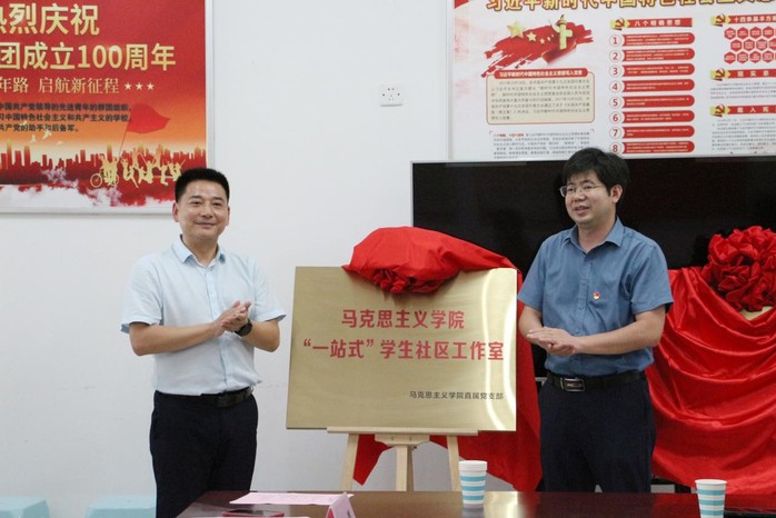 隨后,馬克思主義學(xué)院院長(zhǎng)陳志超、杜娟和陶龍澤共同為馬克思主義學(xué)院“一站式”學(xué)生社區(qū)工作室和“聯(lián)學(xué)共建基地”揭牌。