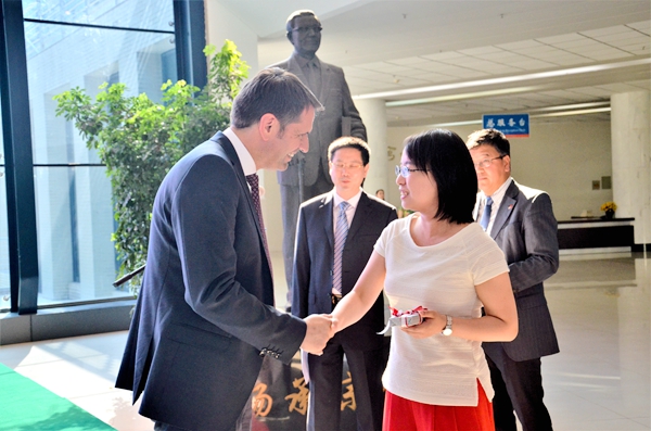 526日,德國下薩克森州經濟、就業與能源部部長奧拉夫·賴斯(Olaf Lies)率下薩克森州經濟代表團訪問我校,為中德合作物流4.0”實驗室揭牌,并參加合肥學院與德國雅德大學結好二十五周年慶典。安徽省外事辦公室副主任張力芳、合肥市副市長吳春梅、安徽省教育廳外事處處長丁育紅應邀出席。