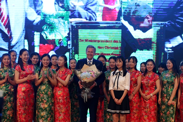 Herr Pr?sident Christian Wulff weihte das ?Existenzgründungszentrum für chinesische und deutsche Jugendliche“ im Rahmen der Modelleinrichtung für die Bildungskooperation ein. Er war auch Zeuge der Unterzeichnung einer strategischen Kooperationsvereinbarung von Prof. Dr. Cai Jingmin und GASME-Generalsekret?r Cao Fang. Er bezeugte au?erdem die Unterzeichnung eines gemeinsamen Abkommens mit dem Europabüro, das von Cao Fang und Michael Pietz, Exekutivvorsitzender des GASME DACH, unterschrieben wurde. Daran nahmen auch Shen Xin, Leiter der Abteilung für europ?ische und asiatische Angelegenheiten von CPAFFC, Li Heping, Bildungsminister der Provinz Anhui, und Zhang Lifang, Vizedirektorin des Büros für ausw?rtige Angelegenheiten der Provinz Anhui, teil.