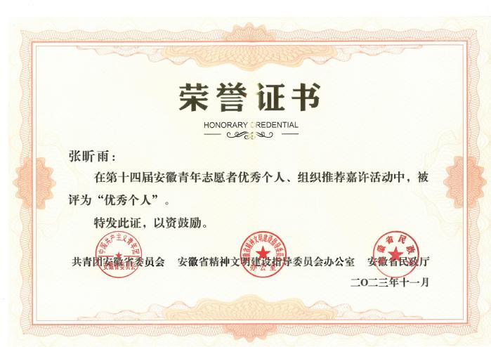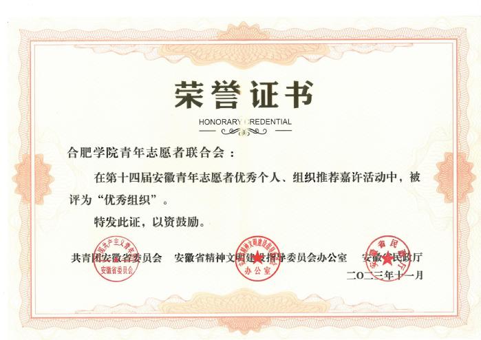 近日,由團省委、省文明辦、省民政廳聯合開展的第十四屆安徽省青年志愿者“優秀組織”“優秀個人”名單公布,我校青年志愿者聯合會獲評“安徽省青年志愿者優秀組織”,經濟與管理學院張昕雨同學獲評“安徽省青年志愿者優秀個人”。