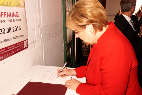 德國當地時間8月30日下午三時許,德國總理默克爾來到施特拉爾松德市,為安徽省在西歐的第一所孔子學院——由我校共建的施特拉爾松德孔子學院揭牌。