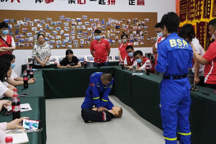 最后,劉曉冬、蘇琴和隊員為參加活動的黨員們帶來了一場生動的急救知識、救援技能分享課程。隊員們在現場實操中演示了海姆立克急救法、心肺復蘇術、緊急止血等技能的實施要領,大家紛紛表示受益匪淺,課程切實提高了大家的安全意識和自救互救能力。